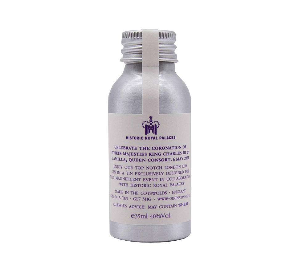 The Coronation Gin is the latest creation from Gin In A Tin, made in collaboration with Historic Royal Palaces. To celebrate the Coronation of Their Majesties King Charles III and Camilla, Queen Consort on the 6 May 2023.